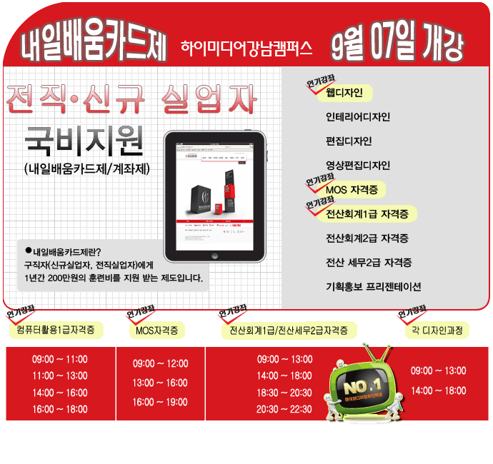 [계좌제 내일배움카드 개강] 2011년 9월 계좌제 개강안내