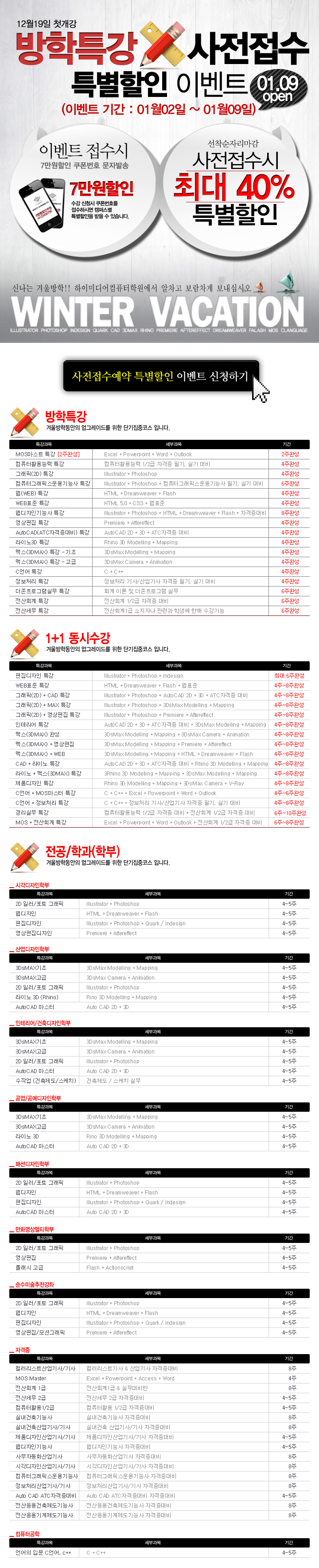 [이벤트] 겨울방학특강 2차사전접수
