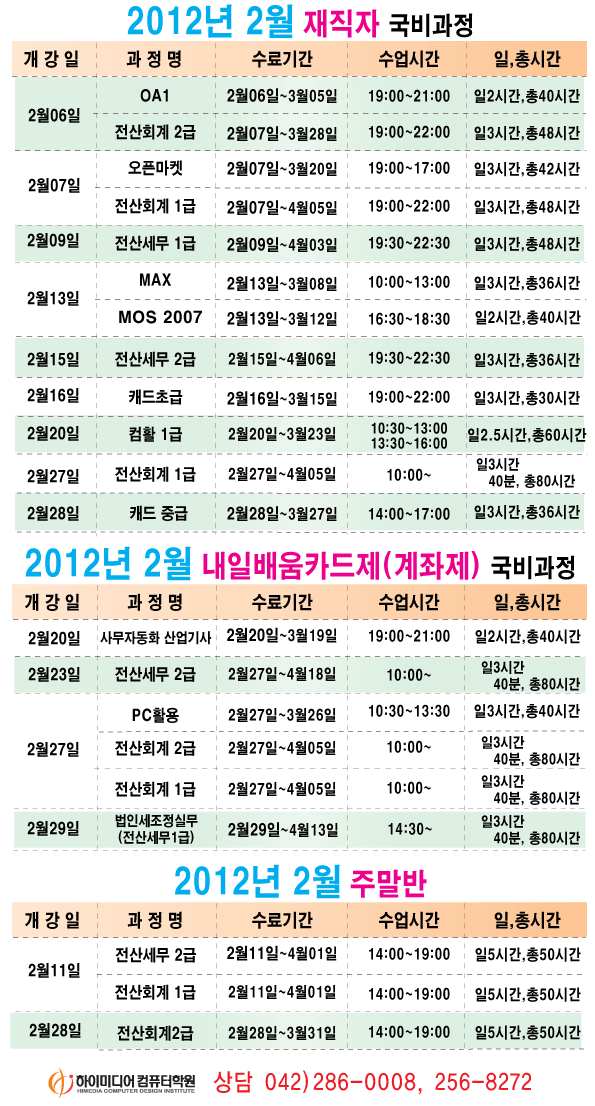 [정규개강]2012년 2월 개강일정입니다.(대전캠퍼스)