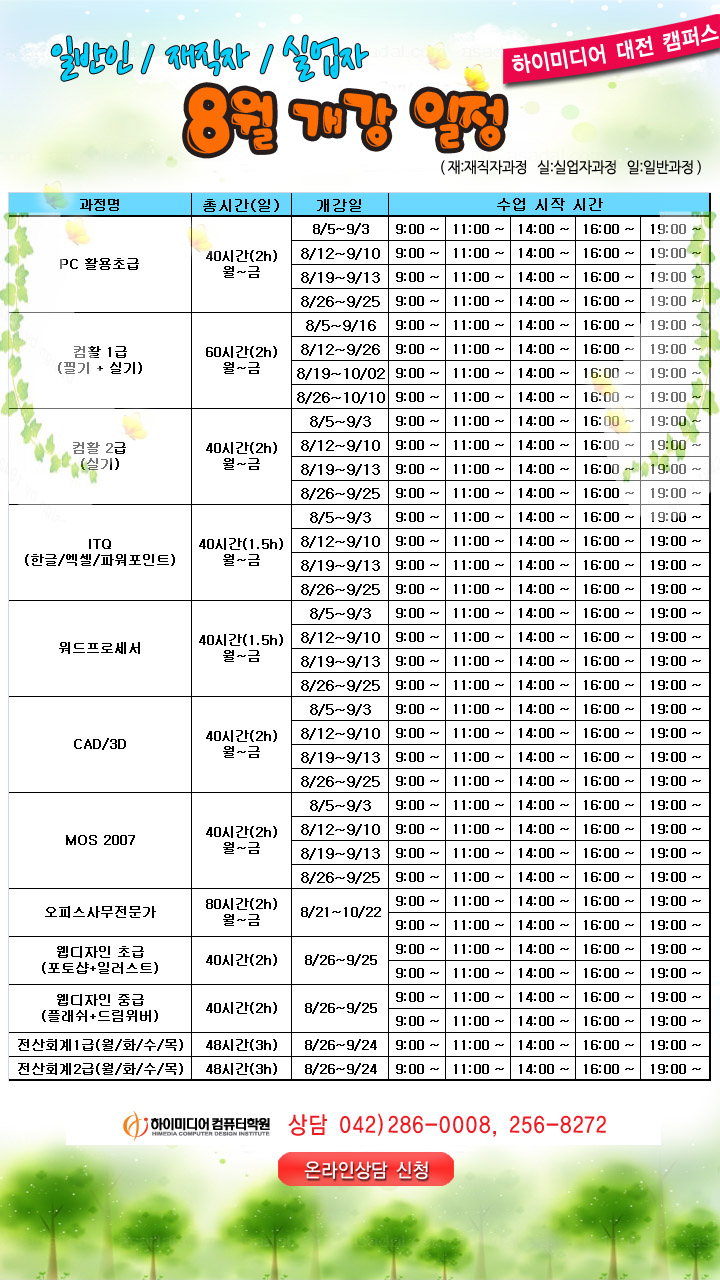 [정규개강]8월 과정 일정 안내입니다.-대전캠퍼스