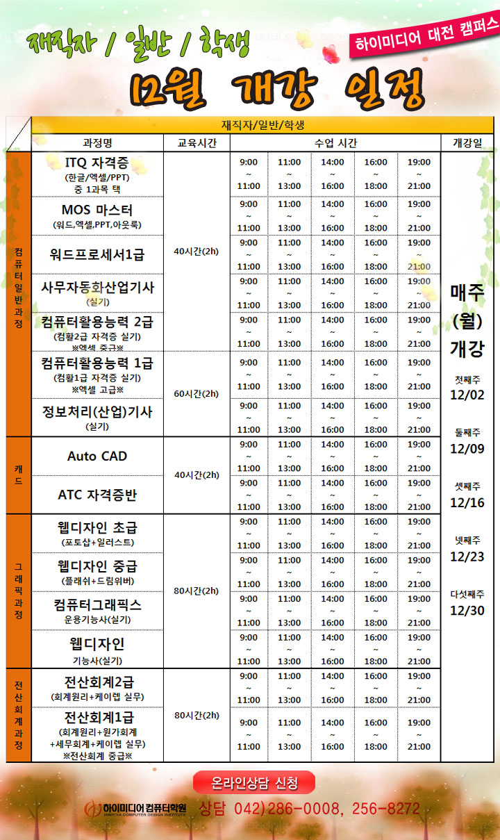 [정규개강]12월 정규강의 일정 안내입니다.